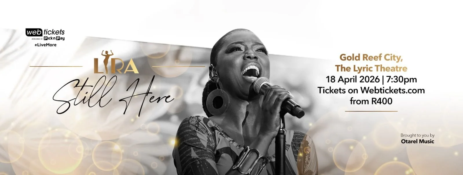 Lira returns to the stage with an intimate solo performance accompanied by her band. Audiences are invited on a powerful journey through music and movement, celebrating resilience, joy and triumph. Featuring the iconic songs reimagined and heartfelt moments of connection, LIRA - STILL HERE, is more than a concert - itβs a celebration of healing, courage and the power of music.